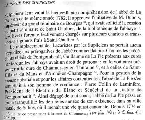 Les propos manuscrits contenu dans la "note concernant le prieuré S.Valentin que Fontgombault possédait à CHAUMUSSAY (Indre et Loire)" ont été livré par Raoul Baudichaud qui avait souhaité compléter l'information contenue dans l'ouvrage cité en référence.